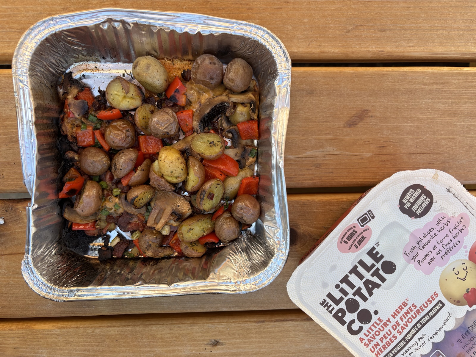 This recipe is a quick meal that makes camping (or even backyard grilling!) simple and stress-free. With Oven or Grill Ready Little Potatoes, fresh veggies, and savory sausage, it’s easy to prep ahead and totally customizable to suit picky eaters or busy weeknights. Everything cooks right in the tray, so you won’t have a pile of dishes to sort out later. Want to simplify even more? Use pre-chopped veggies or swap in your favorite store-bought marinade.
