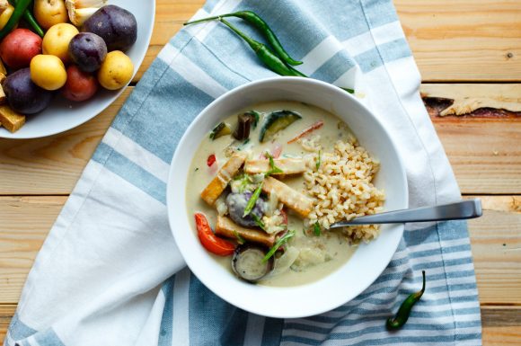 Ce cari vert thaï végétalien est riche, crémeux, plein de saveurs prononcées, et légèrement épicé. Ce repas végétalien réconfortant et copieux regorge de légumes comme des pommes de terre grelots, de la courgette, de la miniaubergine, du poivron rouge et des épinards. Servez ce cari vert thaï avec du riz et du tofu frit (ou des pois chiches!) pour obtenir un repas complet à base de végétaux.