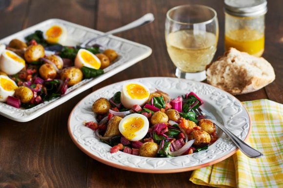 Description : La bette à carde et les petites patates se marient à merveille aux œufs à la coque dans cette somptueuse recette de brunch.