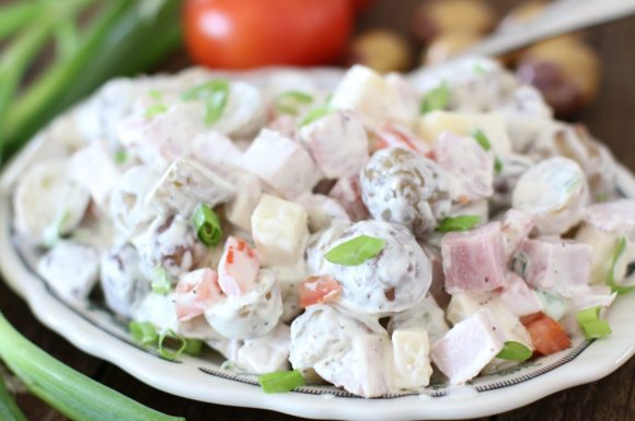 Cette salade de pommes de terre avec du jambon est crémeuse et riche. Vous l’adorerez pour les repas à l’extérieur, les barbecues et les pique-niques.