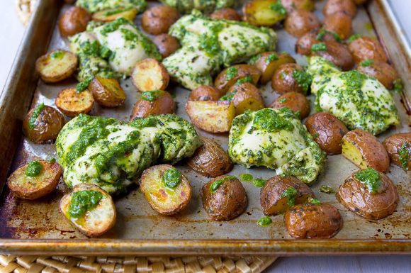 This Chimichurri potato and chicken dish is healthy and delicious with easy clean up.