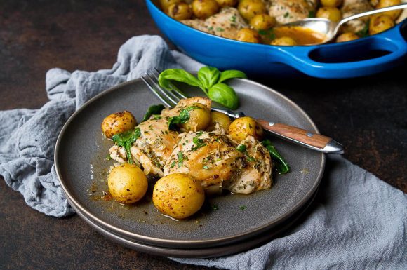 There is so much flavor in this convenient one-pot braised chicken and potato recipe that you won’t believe how healthy it is!