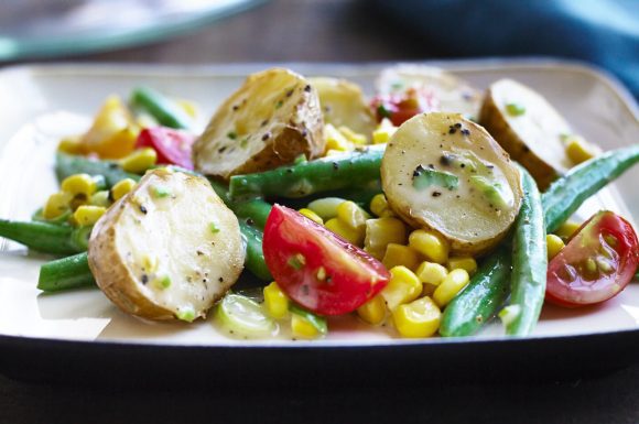 Need a side dish that’s fresh, easy, and crowd-pleasing? This corn and tomato salad with roastedpPotatoes is your answer! Perfect for those busy weeknights or last-minute gatherings, it’s packed with roasted Little Potatoes, sweet corn, and juicy tomatoes, all tossed in a creamy herb dressing. And hey, if you don’t have time to whip up the dressing from scratch, your favorite store-bought ranch or vinaigrette will work just as well. This dish is colorful, wholesome, and guaranteed to make both little ones and grown-ups happy!